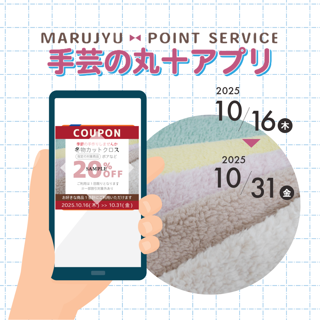 【アプリ会員様限定】冬物カットクロス 20%OFFクーポン配信中 季節の手作りを楽しむ皆さまへ、アプリ会員様限定の特別クーポンをご用意しました。