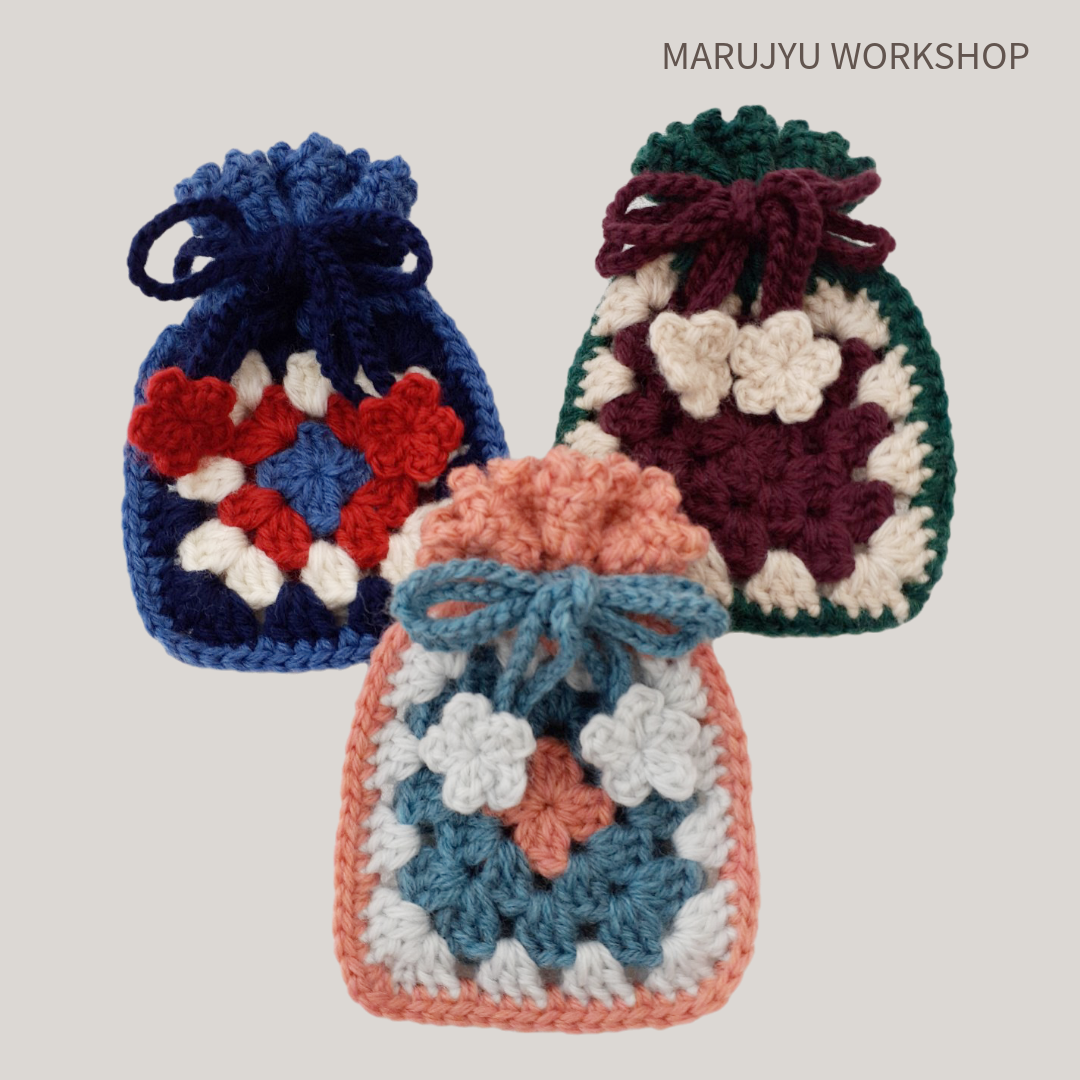 かぎ針編みで、人気のグラニーモチーフデザインの巾着を作ってみませんか?