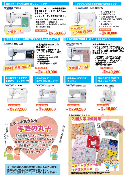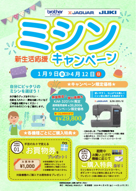 これから入園・入学、新生活を迎えられるお客様、新しい趣味を始めたいお客様はミシンの購入・買い替えの大チャンス!